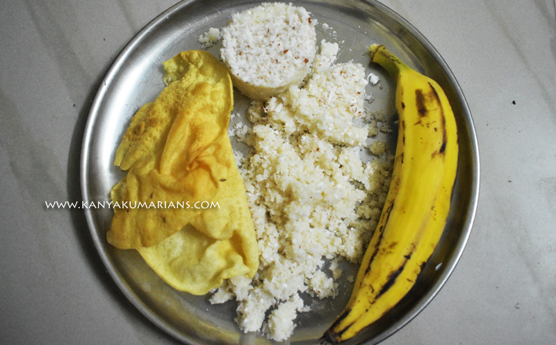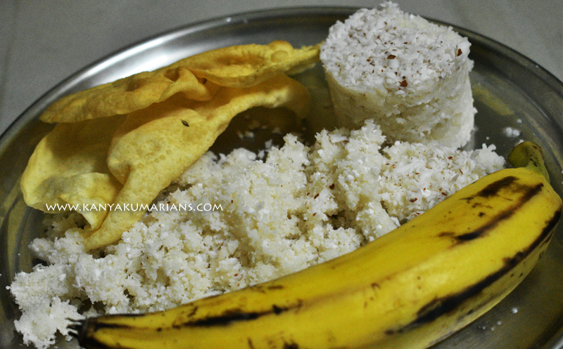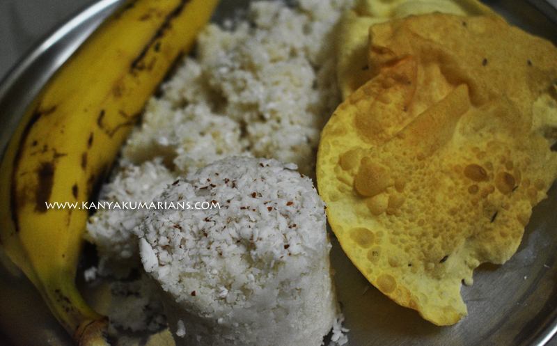 White Rice Puttu, Nendran Pazham & Papadam (Appalam) is one of the most favorite morning breakfast food in Kanyakumari district.