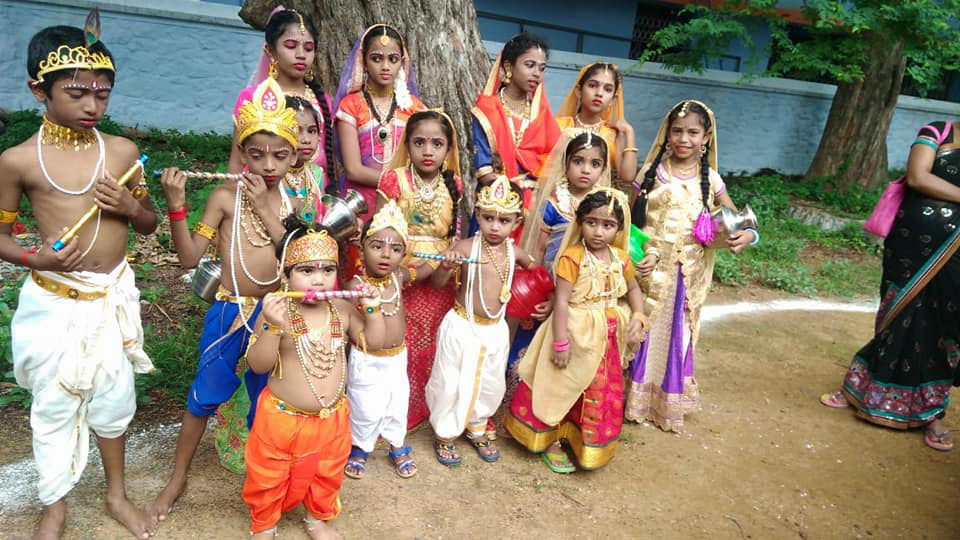 250க்கும் மேற்பட்ட குழந்தைகள், கிருஷ்ணன், ராதை வேடம் அணிந்து கலந்து கொண்டு சிறப்பு செய்தனர்.