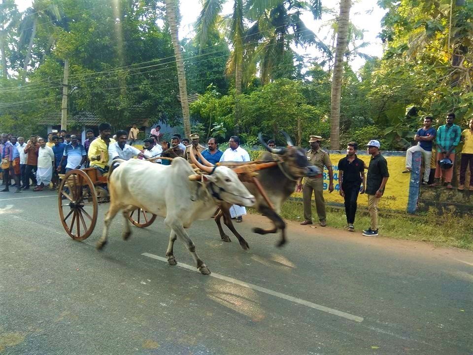 பொங்கலையொட்டி நாகர்கோவில் அருகே வட்டக்கரை அருகே நடந்த காளை மாட்டு வண்டி போட்டியில் சீறிப் பாயும் காளைகள்..